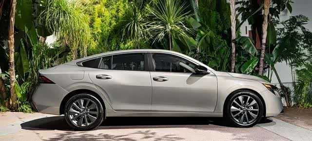 再看外观,全新轩逸走的是“小天籁”路线。前脸换上了日产最新的V-Motion设计语言,中网更大,线条更锐利,LED大灯也更修长,配上熏黑处理的轮毂,走路摇头晃脑的排面,算是有了。风阻系数也优化到了0.248,这在同级里算是顶呱呱的水平了。低风阻不光省油,高速时车也更稳,开起来没那么“飘”。