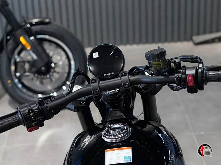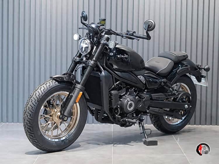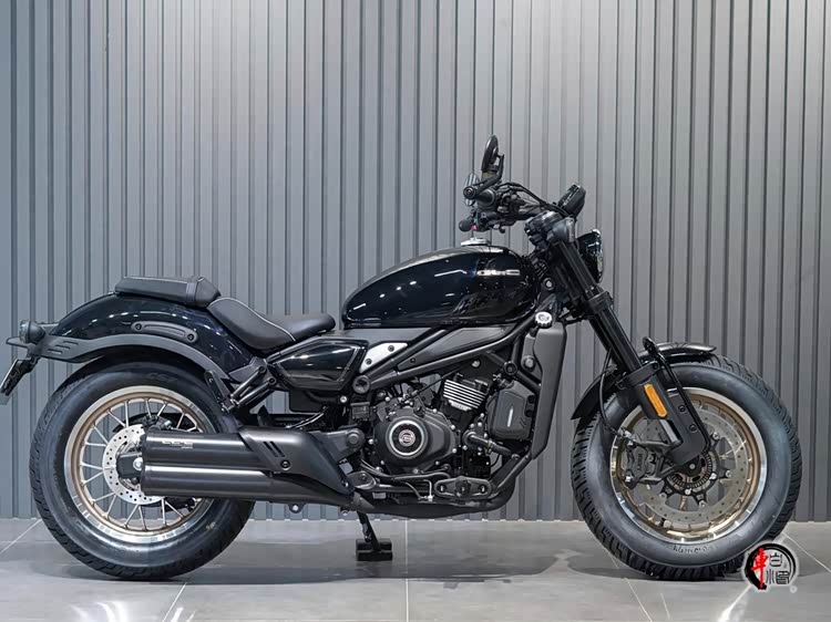 整车延续经典Bobber风格,短尾设计与水滴形油箱构成标志性的复古轮廓。前脸采用经典圆形复古大灯,搭配手把镜,强化运动氛围,车身侧面通过金属部件与拉丝铝板装饰强化细节质感,低座高配合前移式脚踏,形成典型的巡航车骑行姿态。1485mm短轴距与16英寸轮毂的搭配,在视觉比例与操控灵活性间取得平衡,侧置双出排气的造型多少影响颜值。
