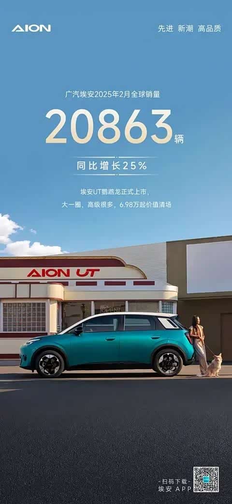 广汽埃安2025年2月全球销量20863辆,同比增长25%