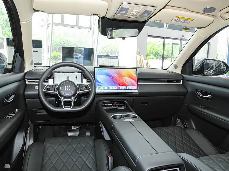进入车内,内饰采用 “极简轻享主义” 设计,胡桃棕、曜石黑两种自然系配色搭配大面积软性材料包覆,仪表台采用 3D-Mesh 包覆工艺,高级感十足。同时新车依旧提供大五座与七座两种布局。大五座车型二排腿部空间 885mm,座椅可向后调节至 119°,183cm 乘客落座后腿部仍有两拳余量;七座车型二、三排放倒后最大容积达 1694L,形成 “阳光大床房”,轻松容纳露营装备或儿童自行车。配置上更是诚意满满:15.6 英寸全高清悬浮中控屏搭载双擎 AI 大模型,中高配车型配备 1.14㎡全景天窗、全车座椅加热 + 方向盘加热,真正实现 “舒适平权”。