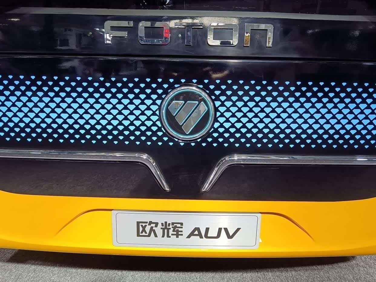 前脸造型简洁干练,贯通左右的蓝色点缀表明车辆的新能源身份,下方呈托举状的两条镀铬饰条满满的飞翔之意,正中央是经典的福田车标LOGO。
