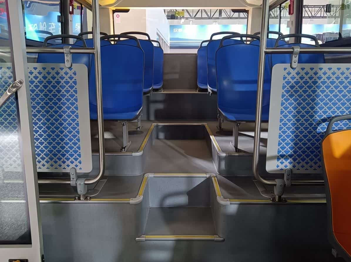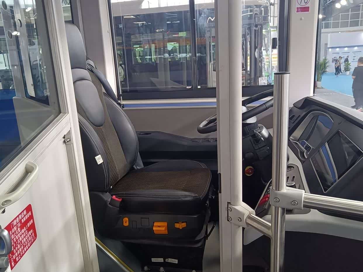 由低地板入口登车,首先映入眼帘的是驾驶区隔离屏蔽门。这是当前城市公交车的标准配置,可为驾驶员创造一个无干扰的驾驶环境,提升公交运营安全。主驾气囊减震座椅软硬适度,具备多项调节功能,支撑性和包裹性都十分到位,大大缓解驾驶员长时间驾车疲劳感。