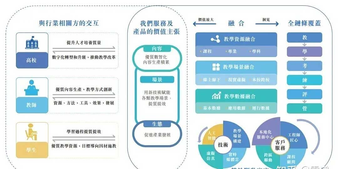卓越睿新的主要收入来源包括数字化教学内容服务、产品以及数字化教学环境服务、产品两大类别。数字化高等教育教学涵盖教学内容与环境的数字化。