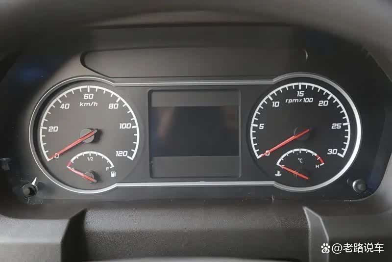 左侧是车速表和燃气表,右侧是转速表和水温表,中间是液晶显示屏。