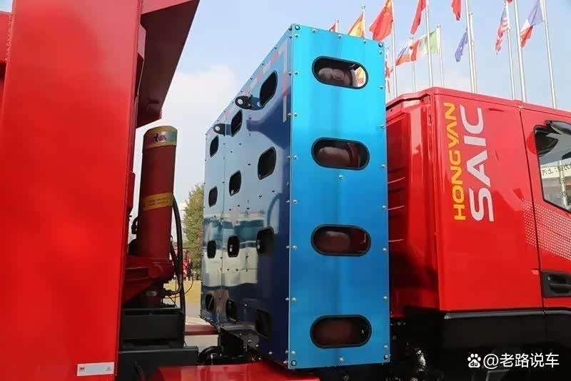 此前我们已经领略了红岩大马力LNG牵引车的风采,在CNG自卸车方面红岩也做到了大马力低气耗。这辆展示中的红岩C6P自卸车搭载的是一台上汽动力SC12ET440Q6型CNG发动机,排量11.81L,满足国六排放标准。发动机额定功率440马力,最大扭矩1950N·m/1200-1400rpm。发动机采用当量燃烧+EGR技术,精准控制空燃比,燃烧更充分,排放更环保,每100km多省10L气。除了展示车上安装的这种发动机以外,还可以选装上汽动力SC12ET和SC13ET系列的其它发动机,功率覆盖400-500马力,客户可以根据自己的需求选择。
