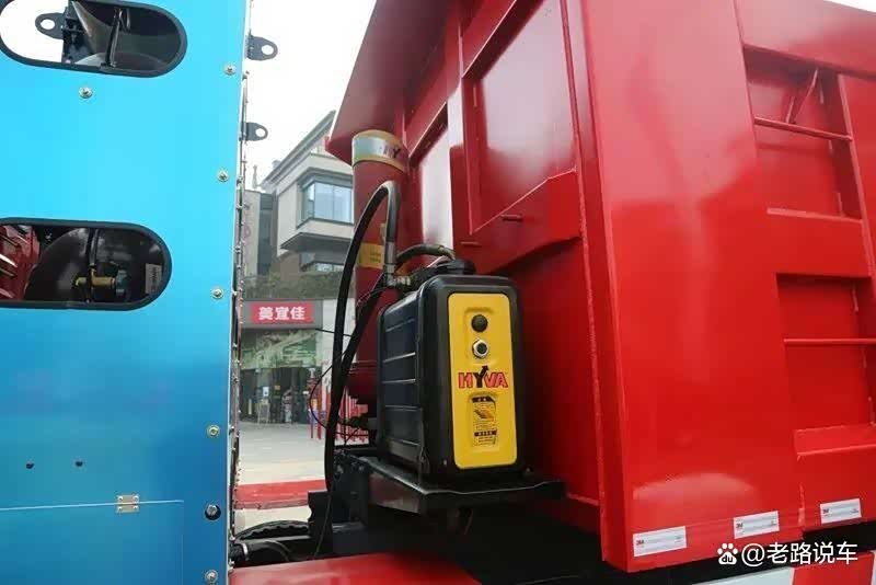 红岩C6P CNG自卸车车厢尺寸可以选择7600/7800×2350×1500mm,这辆车装配了大容积的方形车厢,采用的是前置单缸直推式举升结构,液压举升系统来自海沃,大品牌用起来更放心。
