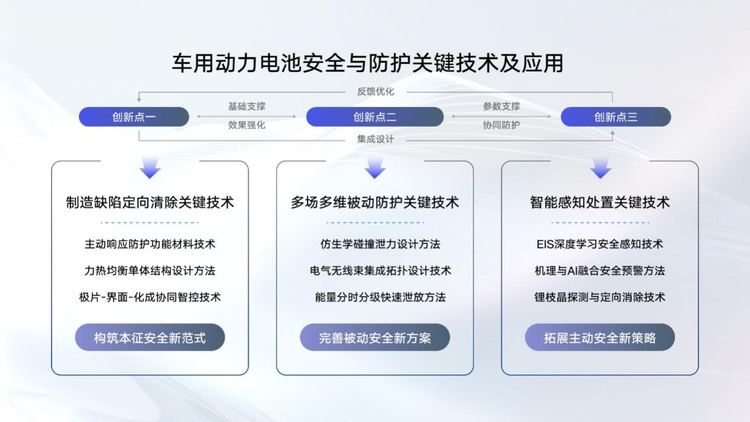 这次获奖的技术成果,主要从本征安全、被动安全、主动安全三个层面构建了全方位的安全保障体系。在本征安全方面,通过创新材料和技术设计,让电芯的热失控极限温度大幅提高,就算经历8针同刺、坦克碾压这样的极端测试,电池也不会冒烟起火。被动安全上,研发出特殊的碰撞泄力结构和能量泄放技术,能应对外部机械伤害,在热失控场景下也能做好防护。主动安全则依靠智能感知和AI预警技术,故障检测准确率超过95%,还能有效探测和消除锂枝晶,进一步提升安全保障。