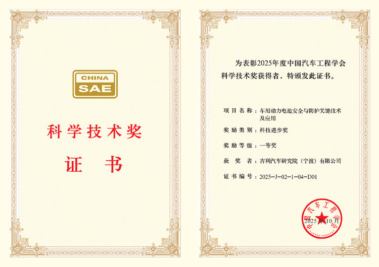 车家号·0浏览·2025-10-31 15:26 · 安徽10 月 22 日,吉利汽车的车用动力电池安全与防护关键技术及应用项目,荣获 2025 年度中国汽车工程学会科学技术奖科技进步奖一等奖。这个奖项在汽车行业规格高、权威性强,还有汽车界奥斯卡的称号,能拿到这个奖,也说明吉利在电池技术领域的创新能力得到了认可。