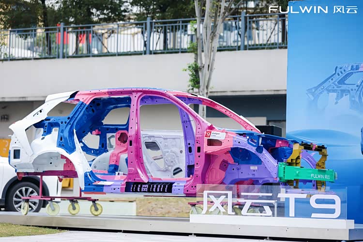 此次公益捐赠的核心物品——风云T9白车身,以其“钢筋铁骨”的架构,成为现场师生关注的焦点。风云T9以全球五星安全标准打造,采用85%高强度钢与21%热成型钢构建起坚固的车身结构。车身关键部位使用硬度高达1500Mpa的热成型钢,覆盖A柱、B柱等核心受力区域,形成坚固的乘员舱结构,为乘客提供全方位防护。