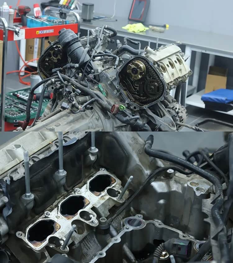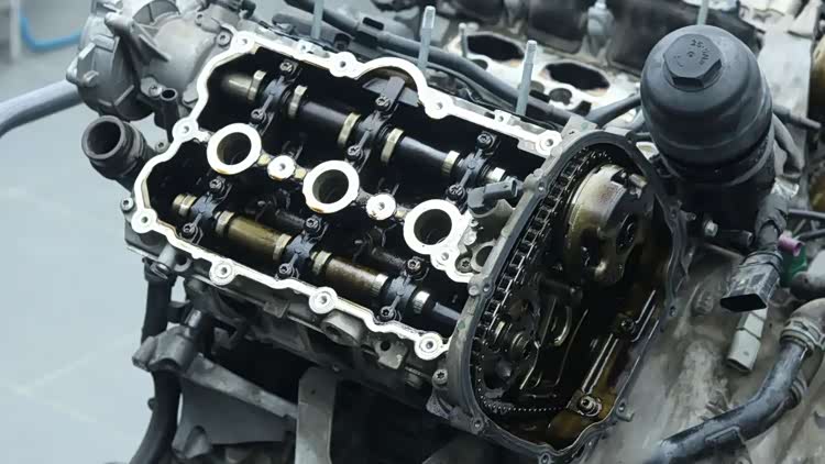 安装凸轮轴系统,对于EA837发动机的组装工作,对咱们来说有点轻车熟路了,因为咱们修的途锐太多了。