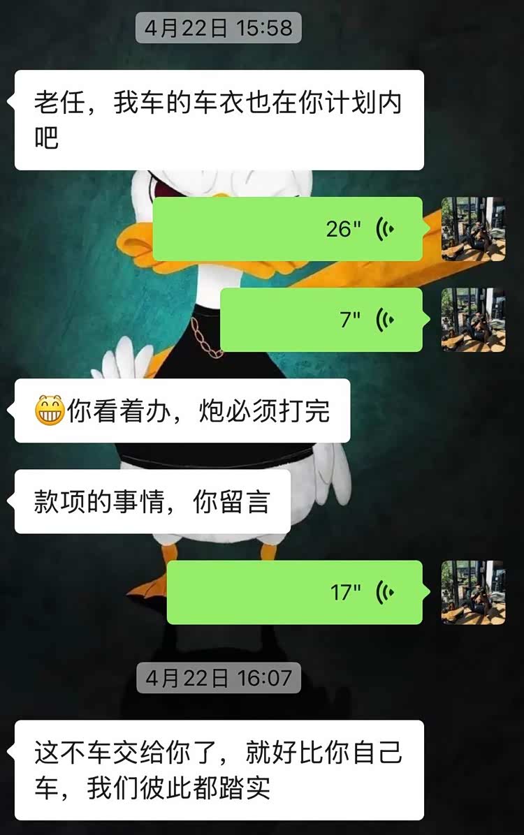 发给车主看看,车主还是那句话:按照我的标准来。那我必须给车主一辆新车的状态!