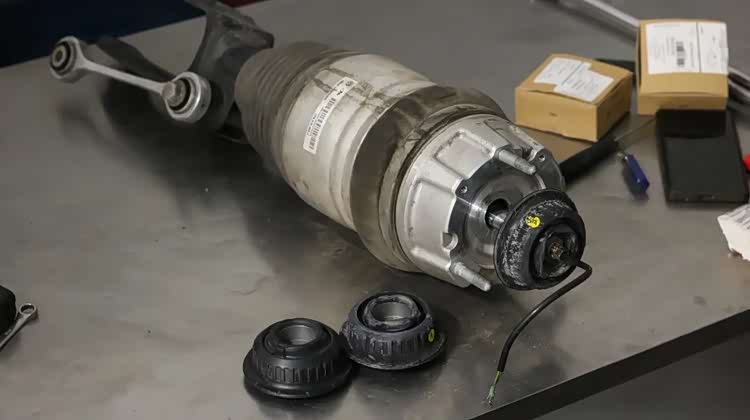 拆解前空气悬挂,更换塔顶橡胶缓冲块。