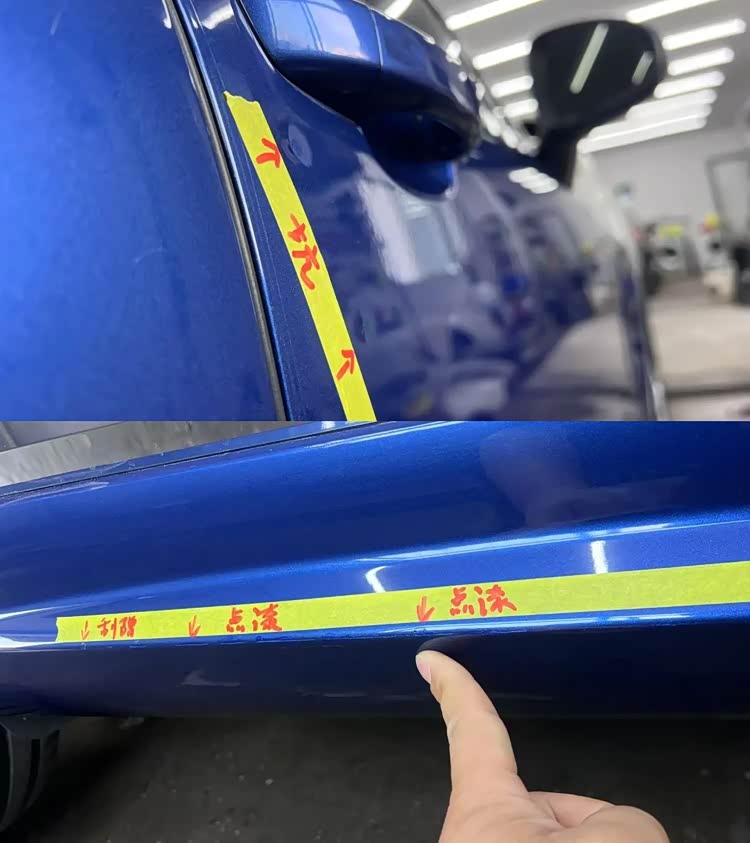 外观欣赏,全车漆面精抛+划痕凹坑局部修复。