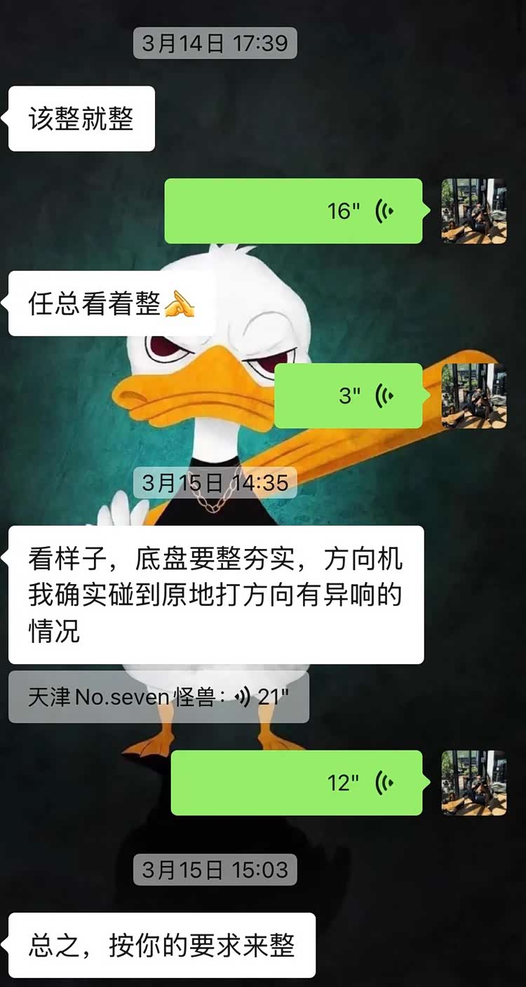 时间已经来到4月16日了,这个底盘共振问题,反反复复折腾了一个月,路试了1000公里,修的不是车主的车,而是咱们自己的心,俗话说得好:修心养性,全靠韧劲!