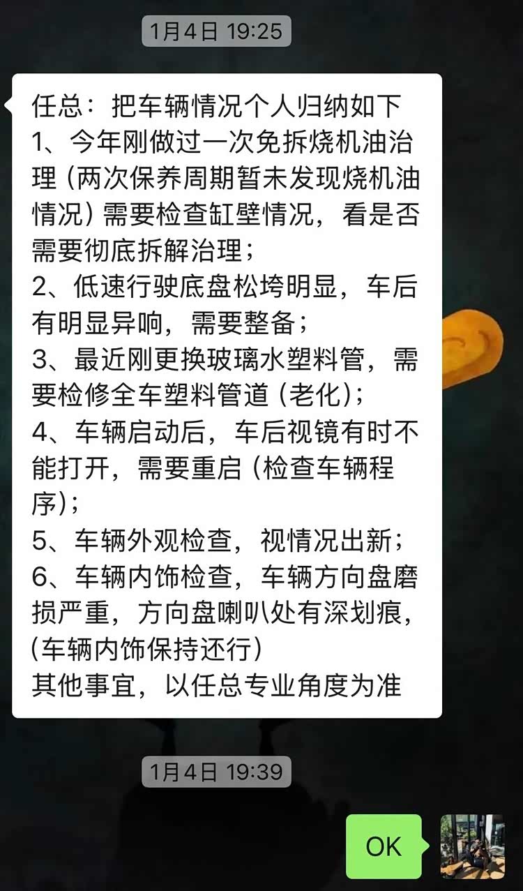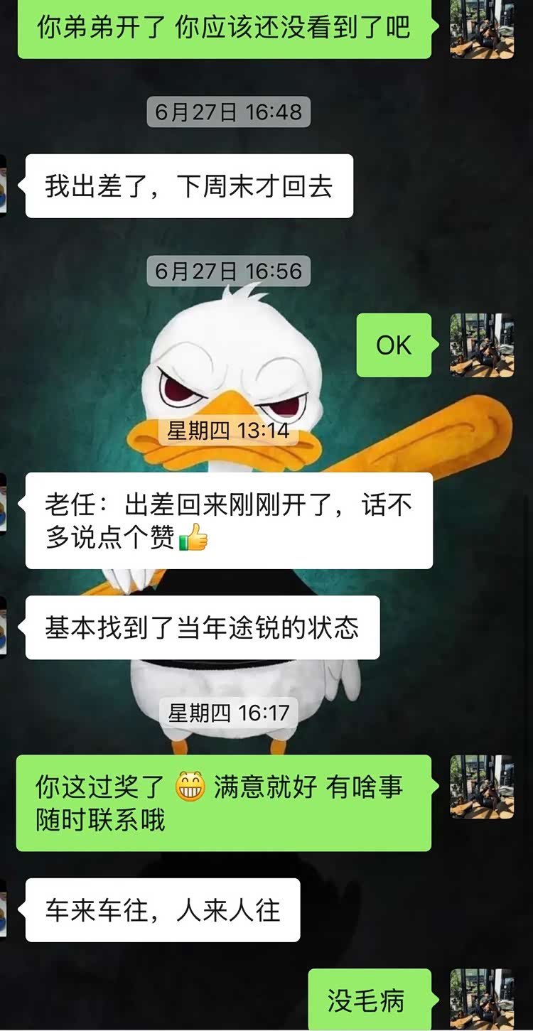 检查车况,实时汇报车主,这位车主特别信任我,咱肯定不能让他失望。
