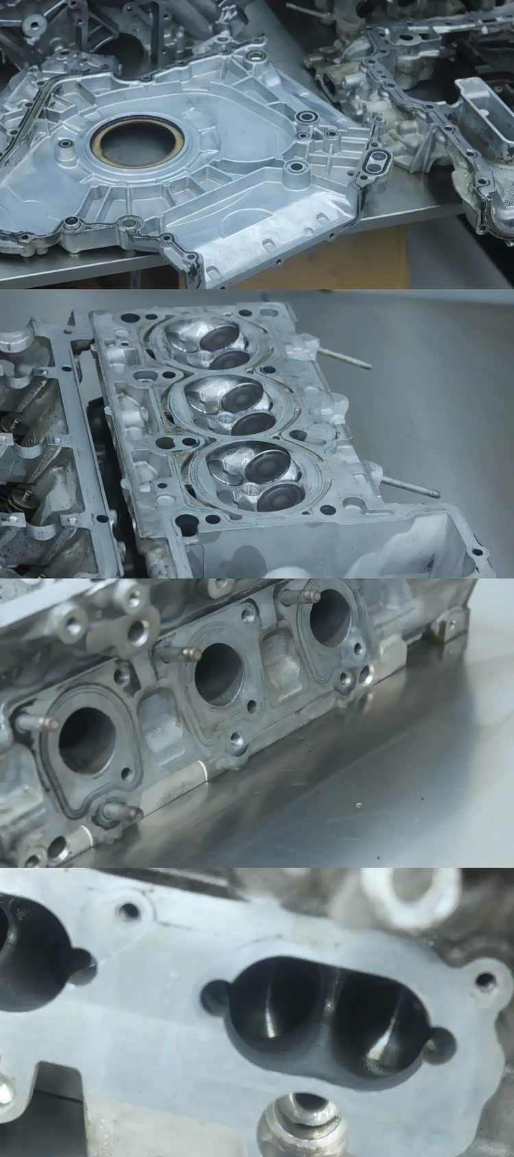 发动机抬下来了,对于二次进气的积碳问题,就是图上的这个排气口位置,想把这个积碳清干净不报故障,就必须拆下来发动机做清洁,否则无解。