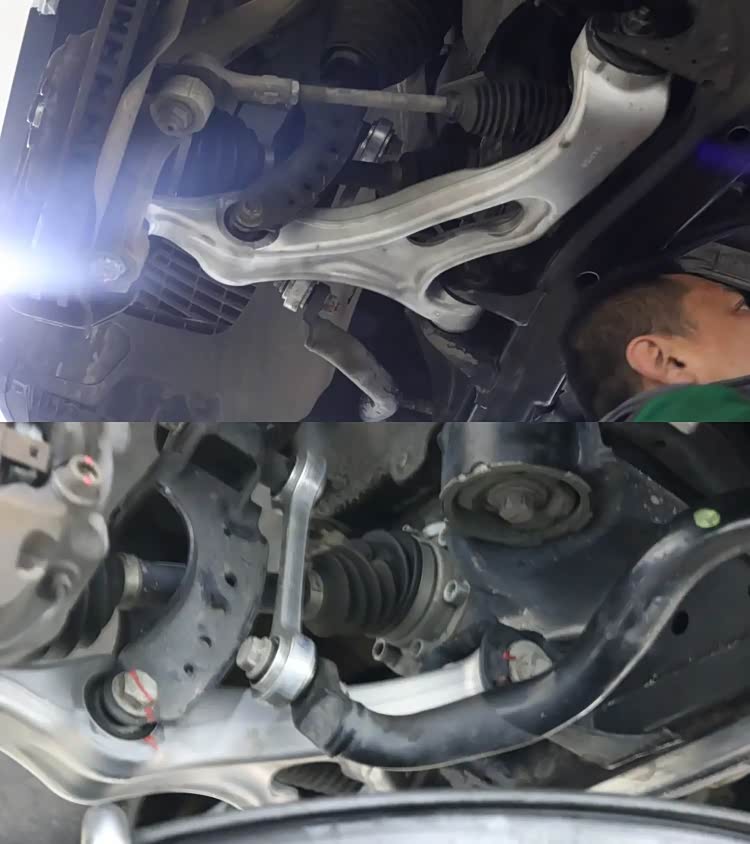 更换好上下摆臂。一台大众途锐的常规易损件也就这些了,只是没想这台车的底盘不常规!后面再看底盘故事吧:
