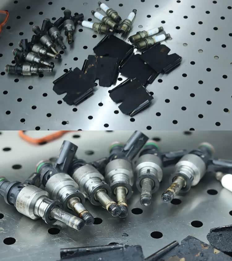 瞧瞧这喷油嘴和进气挡板,积碳严重!