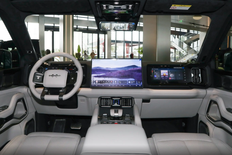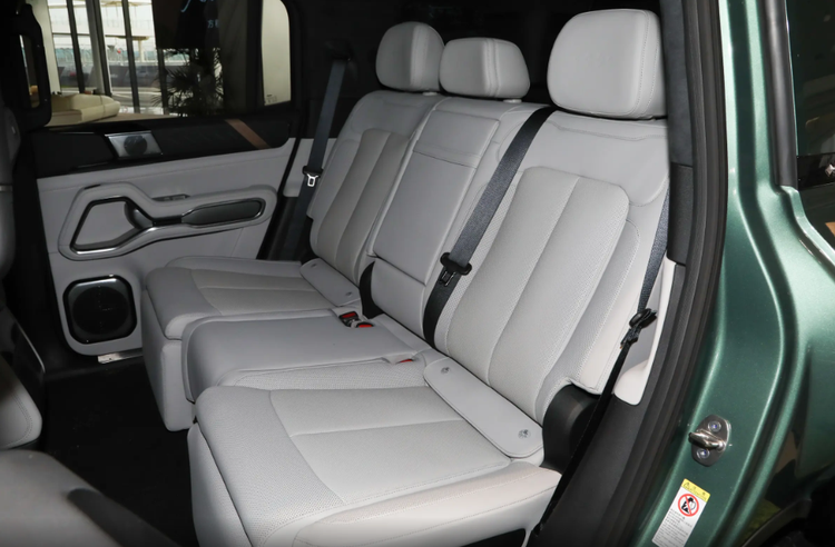 至于前排内饰设计布局与之前保持一致,狂野中透露着精致,多了一款灰色内饰可选,三块大屏几乎占据着中控台大部分面积,尤其是中控屏尺寸更是达到了17.3英寸大小,简直就像是一个小型电视机,内置丰富科技功能,基本上不管提出什么需求,语音助手都可以帮你解决。换挡系统保留了传统的机械档把设计,档把外形宽大饱满,拥有很不错的握感,周围保留了大量物理按键,在操控一些越野模式的时候更便捷。