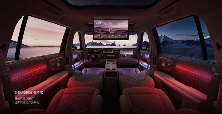 后排乘客则配备21.5英寸顶置娱乐屏,实现整舱沉浸式影音体验。