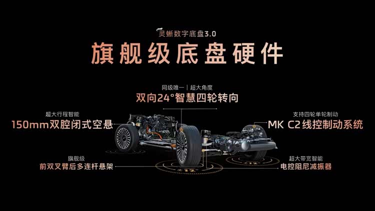 智己LS9搭载的灵蜥数字底盘3.0,解决了传统大六座“笨重不灵活”“侧倾像开船”的高频痛点。同级唯一的双向24°超大角度智慧四轮转向系统,实现仅4.95米的超小转弯半径,成就“最好开的大六座SUV”。