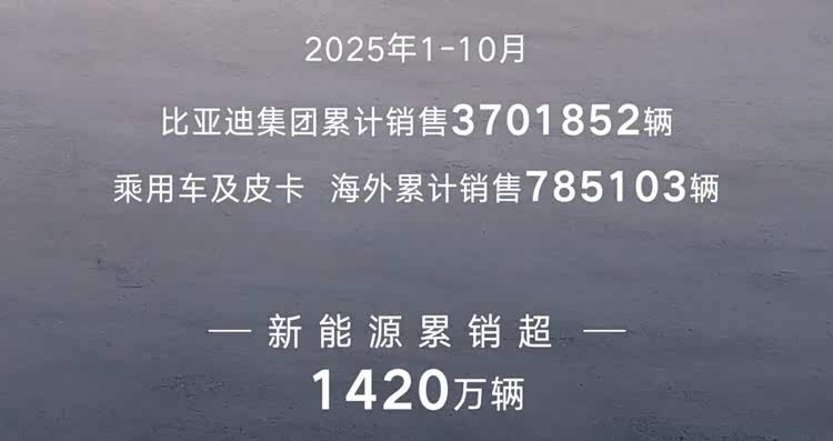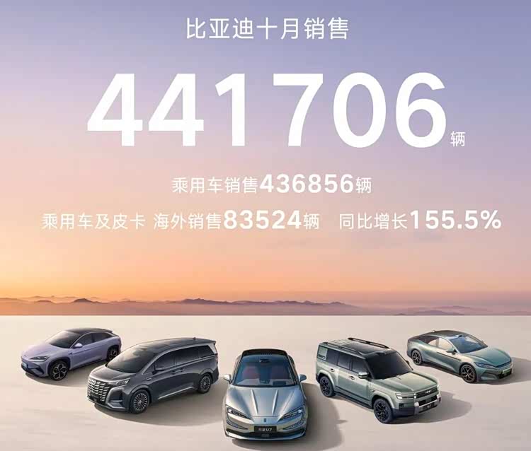 车家号·0浏览·2025-11-07 08:57 · 福建比亚迪发布其2025年10月的成绩单,单月销量新车突破44万辆。