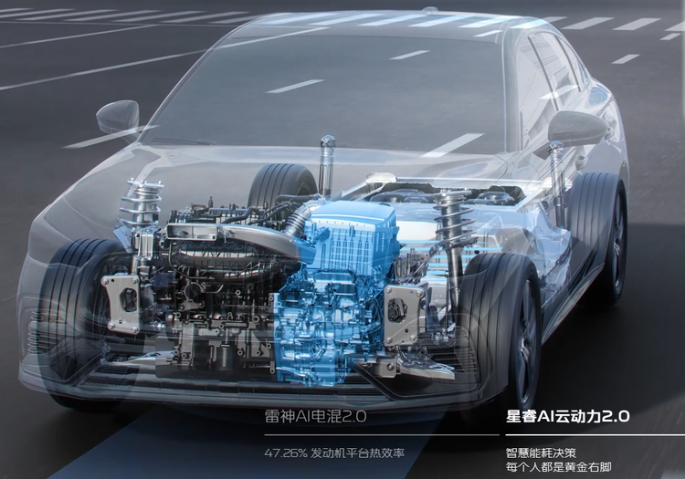 开得省:搭载新一代雷神AI电混2.0系统,集成全球量产热效率最高47.26%的电混专用发动机平台,以及行业首个基于AI场景引擎的动力域智能体“星睿AI云动力2.0”,在CLTC工况下实现了同级最低的2.8L/100km馈电油耗,每公里用车成本低至2毛钱。