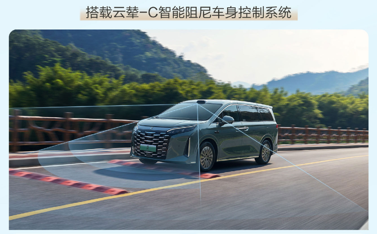 底盘技术上,全系标配的云辇-C智能阻尼车身控制系统配合TBC高速爆胎稳行系统,构成了兼顾舒适与安全的底盘解决方案。云辇-C可提前识别路面颠簸并调节悬架,而TBC系统即使在140km/h高速爆胎时也能稳住车身,为家庭出行提供了坚实保障。
