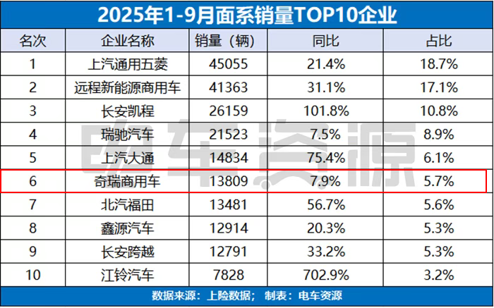 然而,昔日VAN车市场领头羊开瑞的面系销量却交出了一份差强人意的成绩单。今年1-9月,开瑞VAN车累计销量13809辆,同比增长7.9%,不仅跑输大盘,排名也掉出TOP5。这一数据不仅无法与早年辉煌时期“坐二争一”相比,也没有了6方中面时代“ 江豚(参数|询价)上市即爆款”的惊艳表现。