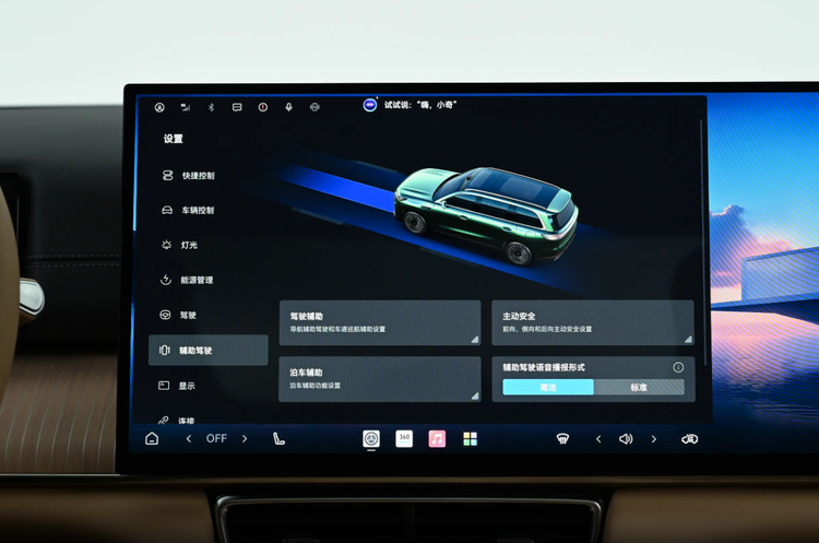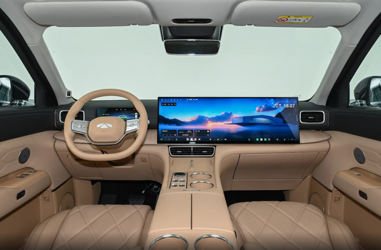 进入车内,风云T11的座舱有着豪华与科技并重的氛围,台面区域通过立体的结构和撞色的设计,形成了清晰的上下分区,30英寸6K一体屏,横贯了中控和副驾区域。车内采用大面积的软质材料包覆,配合木纹饰板与菱形纹路皮质包裹的组合,提升了座舱的豪华感。值得一提的是,风云T11全系都采用了母婴级环保材质,车内甲醛浓度低于0.01mg/m³,对家庭用户尤其是儿童和老人较为友好。
