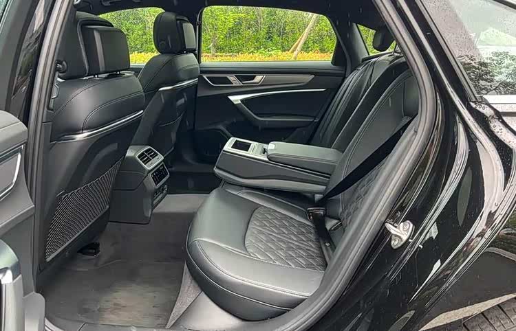 侧面和尾部造型也很耐看,尤其是车身的姿态,富有空气动力学的车顶、流畅的车身,满满的优雅感。而在尺寸上,奥迪A6L的车身长宽高分别为5050mm、1886mm、1475mm,轴距长度为3024mm,从数据上看,奥迪A6L的尺寸不如奔驰E级和宝马5系,但是得益于其前驱的布局,实际的得房率更高,空间还是比较宽敞。就拿身高1米8的男性用户来说,坐在后排保持舒适的坐姿,膝盖距离前排座椅足足有三拳多的空间,能翘起二郎腿,而且座椅经过真皮包裹,坐上去具有不错的支撑性和包裹性。