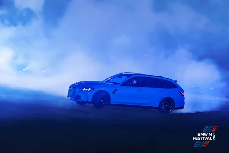 但高潮并未结束——紧接着,M3 Touring以漂移方式杀入会场中央,没有倒计时、没有暗场,它直接完成了中国首秀,并把现场情绪推向最高点。