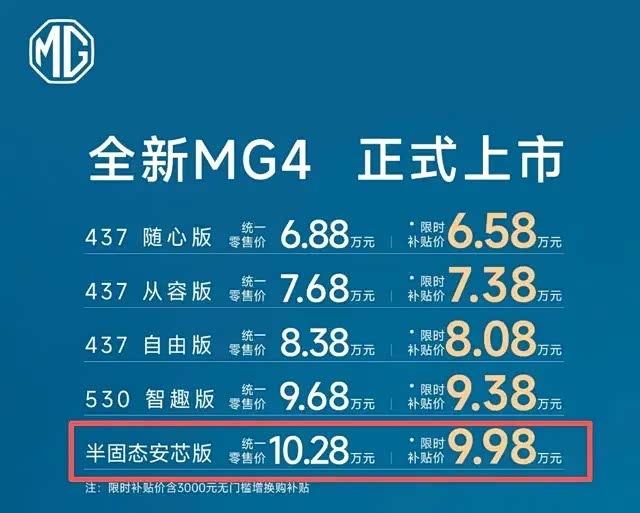 这或许也解释了为什么,搭载固液电池的全新MG4能将售价压到10万元以内。