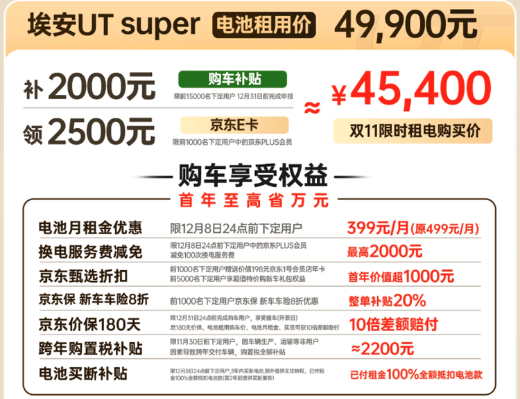 如果租电购买,电池由宁德时代面向 “ 只换不修 ” 车主负责质保,其余的电机、电控等是广汽提供终身质保。