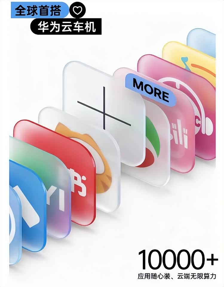 支持 10000+ 应用随心装、云端无限算力,同时配备 AI 语音大模型,鸿蒙、苹果、安卓等多种手机与车辆互联功能。