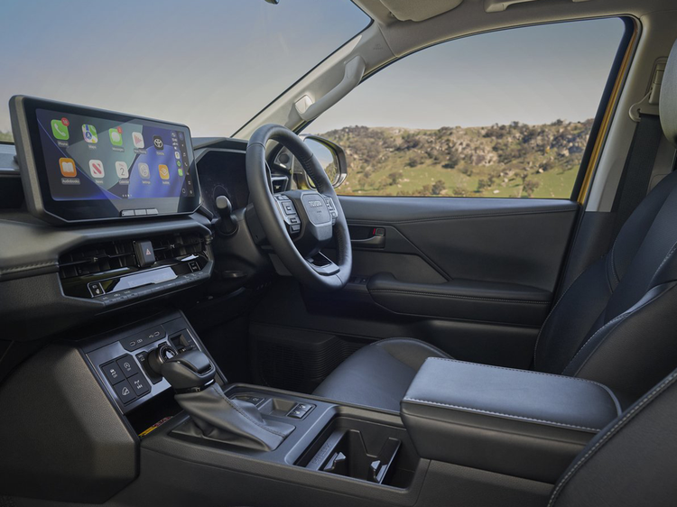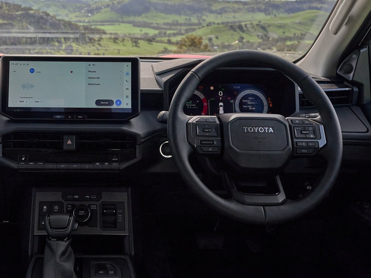内饰采用全新三层设计,使驾驶员视野更开阔,尤其在越野路况下利于观察前方障碍。中央仪表盘数字化,WorkMate与SR版本配备7英寸屏幕,SR5及以上车型配备12.3英寸仪表盘和触控屏。