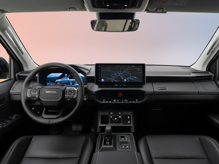 多媒体系统支持无线CarPlay和Android Auto,集成嵌入式导航、语音控制和丰田连接服务功能。气候控制界面采用直观旋钮与按键,操作时驾驶员可集中注意力于路面。方向盘经过重新布局,区域分为信息娱乐、音频和驾驶辅助模块,并提供加热功能。中央控制台加宽加固,座椅支持电动调节及腰部支撑功能,部分车型为皮革包覆。整体布局兼顾长途驾驶舒适性与日常操作便利。
