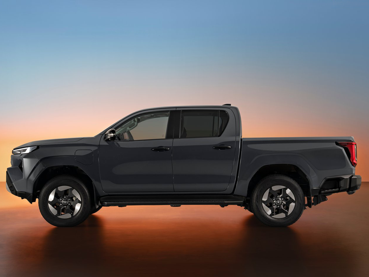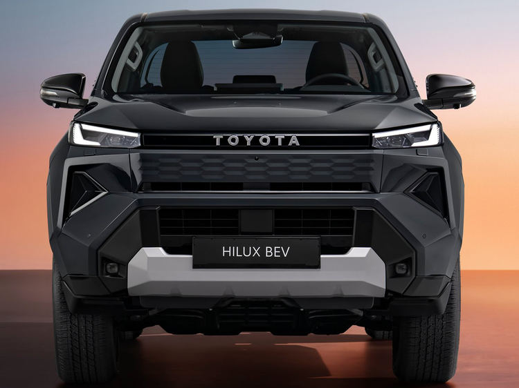全新HiLux的外观以“强悍且灵活”为设计原则,前脸比例调整后呈现更高的视觉宽度感。前灯组采用纤细LED结构,通过中央横条连接,横条中标注丰田标识。电动版本取消传统进气格栅,并配备针对空气动力学设计的合金轮圈。