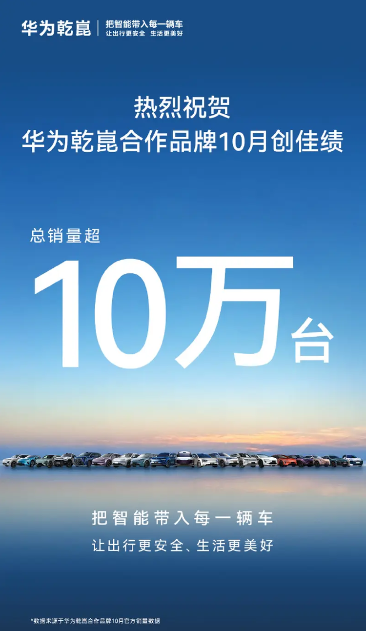 4、华为乾崑合作品牌10月总销超10万辆