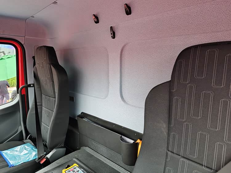 驾驶室后部设有挂钩和储物槽