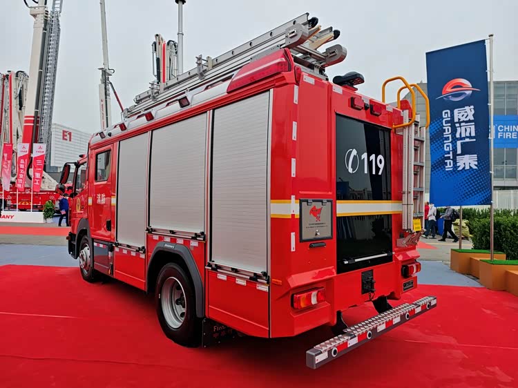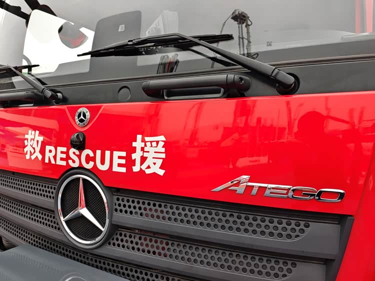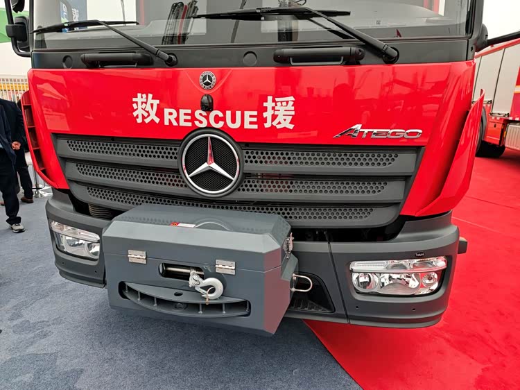 图上这辆奔驰ATEGO(阿提戈) 1330消防车底盘由德国戴姆勒卡车公司生产,上装由威海广泰空港设备股份有限公司下属的北京中卓时代消防装备科技有限公司打造,是一辆压缩空气泡沫消防车。奔驰ATEGO不仅是欧洲著名的中型卡车,还是欧洲消防市场的主流车型,号称欧洲每三辆消防车中就有一辆用奔驰ATEGO底盘改装。如今来自欧洲的明星车型来到中国,令广大参观者眼前一亮。