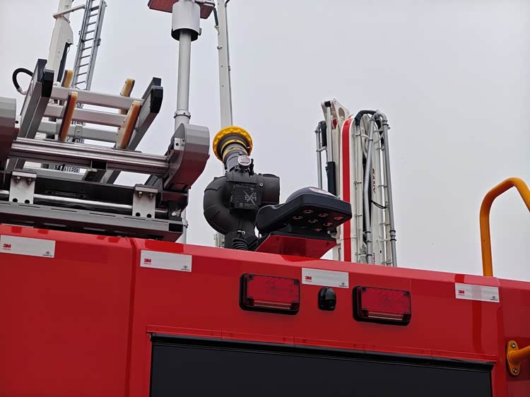 车顶布置了消防梯、消防炮、应急照明系统