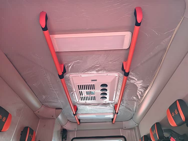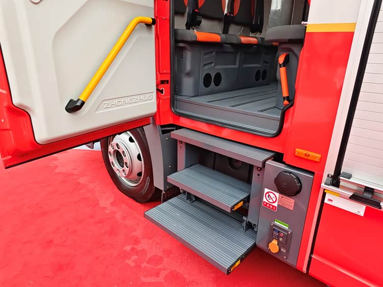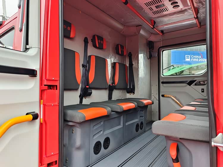 消防员室内设有照明灯、空调、扶手,消防员即便是穿着厚重的服装也可以有着较为舒适的乘车环境。
