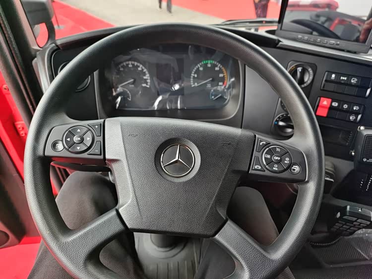 车上搭载一台7.698L奔驰OM936LA.6GE-03型直列6缸柴油发动机,发动机最大净功率220kW约299.12马力/1800rpm,最大扭矩1200N·m,满足国六排放标准。变速箱采用奔驰G140-8型8速手自一体变速箱,操作方便,动力充足。