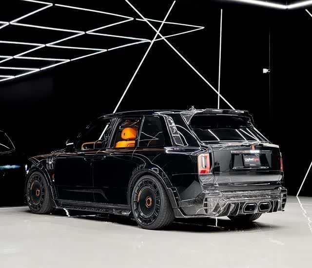 先说颜值,库里南本就是“国民神车型”SUV里的顶流,气场两米八,开出去谁不看你一眼?但迈莎锐一出手,直接给它来了个“黑化升级”。全车碳纤维不仅轻量化,视觉上也更战斗、更凶狠。前脸的进气格栅被重新设计,尺寸更大,线条更锋利,配上那对标志性“神采奕奕”的大灯,整台车就像一位穿了高定西装的拳击手,优雅中带着杀气。轮毂也换成了24英寸的定制款,造型复杂得像艺术品,配上大尺寸刹车卡钳,光是站在车旁,你都能感觉到一股“别惹我”的气场。