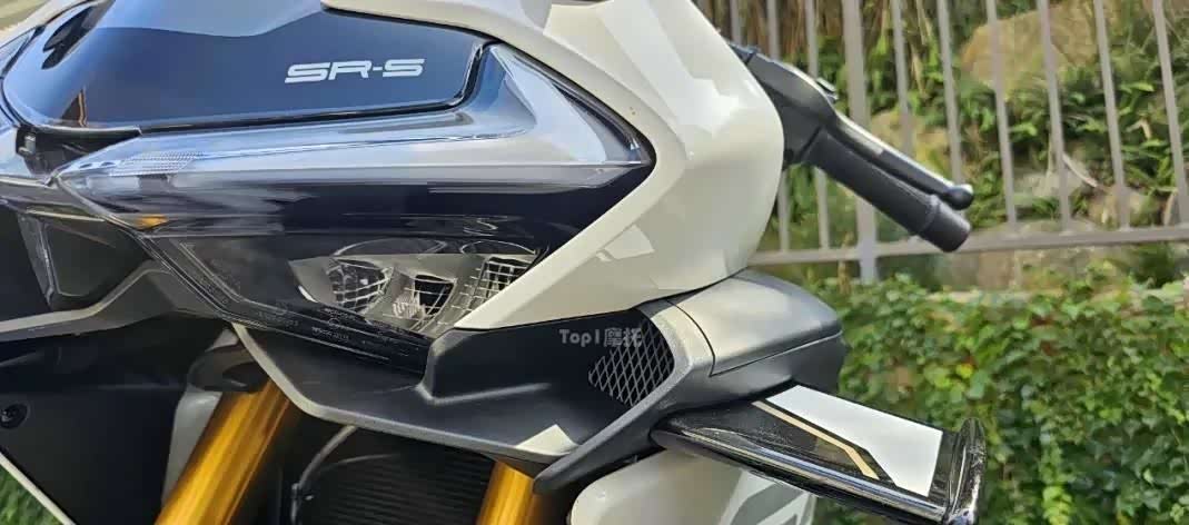 750SR-S的外观设计延续了春风SR家族的激进风格,细节处更显张扬。 车头线条锋利,定风翼不仅是装饰,在时速160km/h时可提供3公斤下压力。 最具辨识度的是双边四出排气系统,高位对称布局配合声浪优化技术,让四缸的绵密声浪更加浑厚。 单摇臂结构不仅减轻了重量,更让后轮机械美感一览无余。 车身灯光系统充满科技感,大灯具备开关动效、自动大灯和弯道辅助功能,转向灯则集成在后视镜和尾灯中。