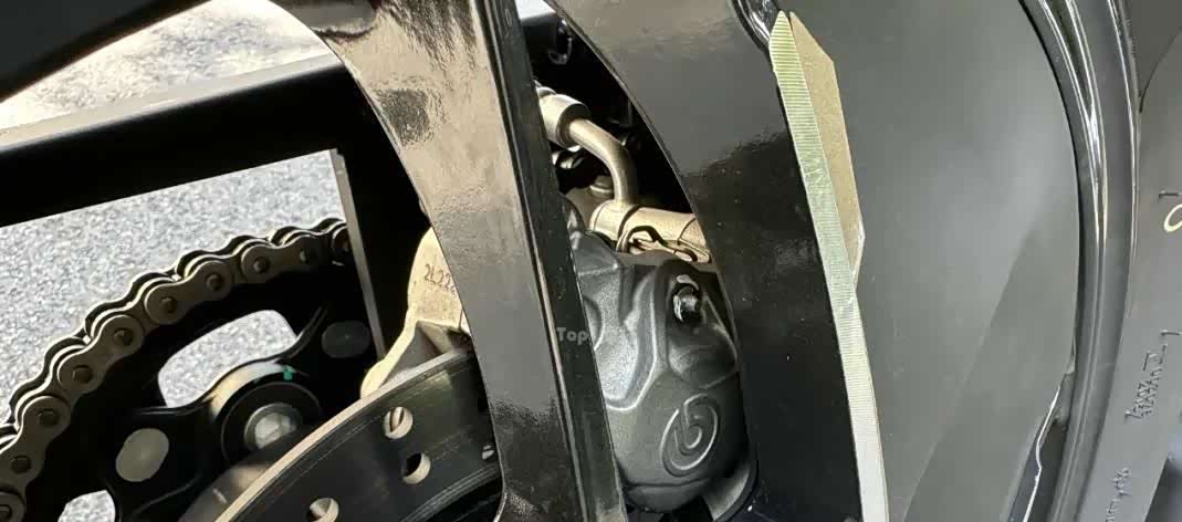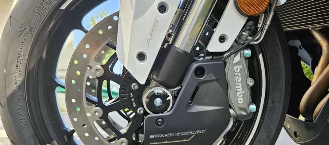 底盘配置堪称豪华。 前320mm双碟配Brembo径向四活塞卡钳,后240mm单碟配Brembo双活塞卡钳,前卡钳还增加了散热导流罩。 43mm KYB倒立式前减震支持压缩、回弹、预载多段调节,后减震为KYB外置气瓶多连杆结构。 原厂配备20段可调阻尼的钛尺,有效提升高速稳定性。 玛吉斯定制SP高性能轮胎采用中间全热熔、两侧半热熔的复合配方,抓地力表现突出。