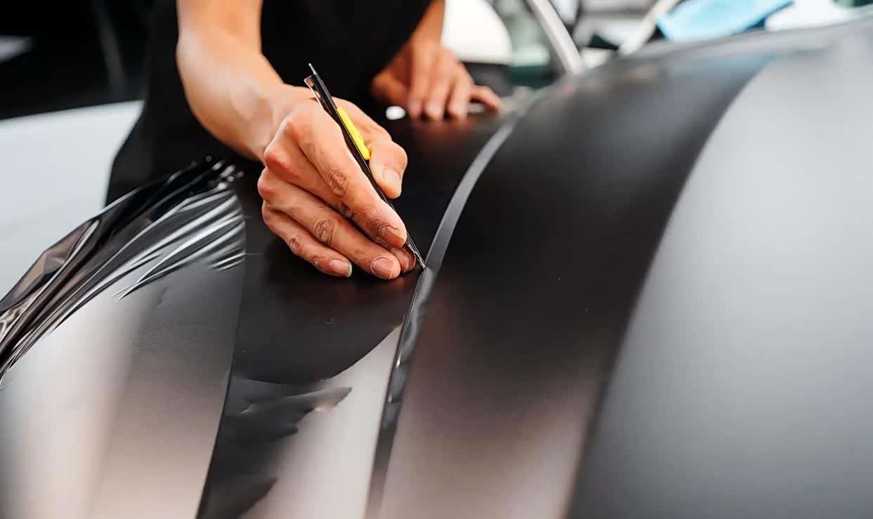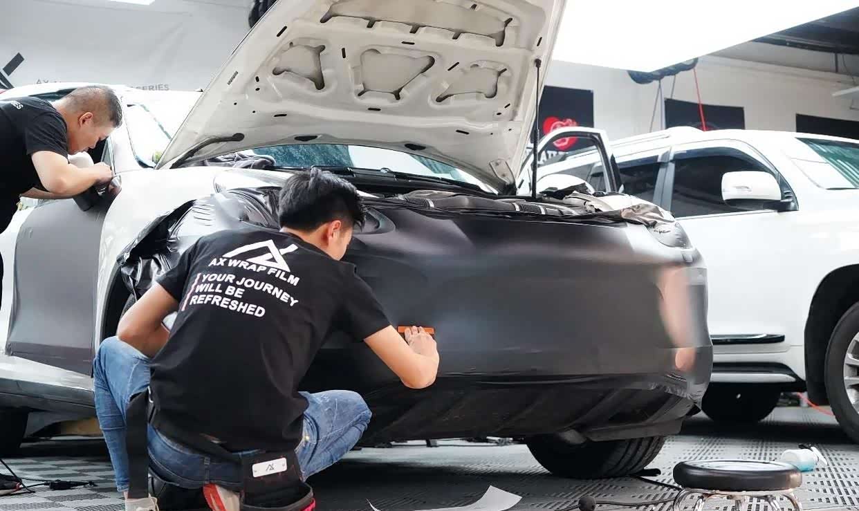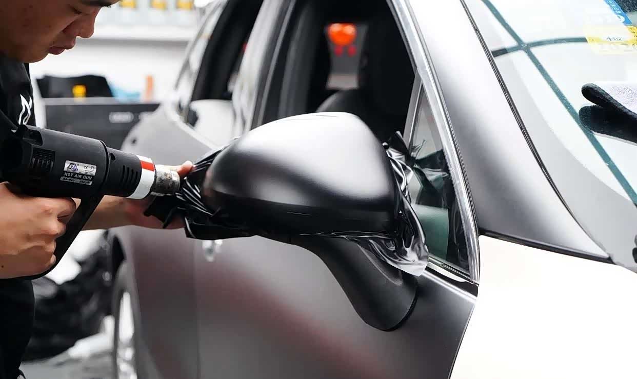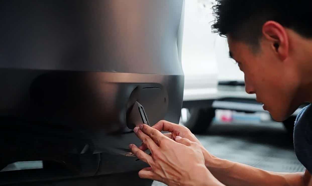 不过,车身贴膜可不像手机贴纸那样简单。如何将车膜贴得平整,收边完美,从而展示出最佳效果,这十分考验改色贴膜技师的水平。一个优秀的技师,对刀具使用力度的掌握必须精准到位。如果技术不过关,在收边裁剪过程中,刀刃很容易在车漆表面留下划痕,造成车漆破损。