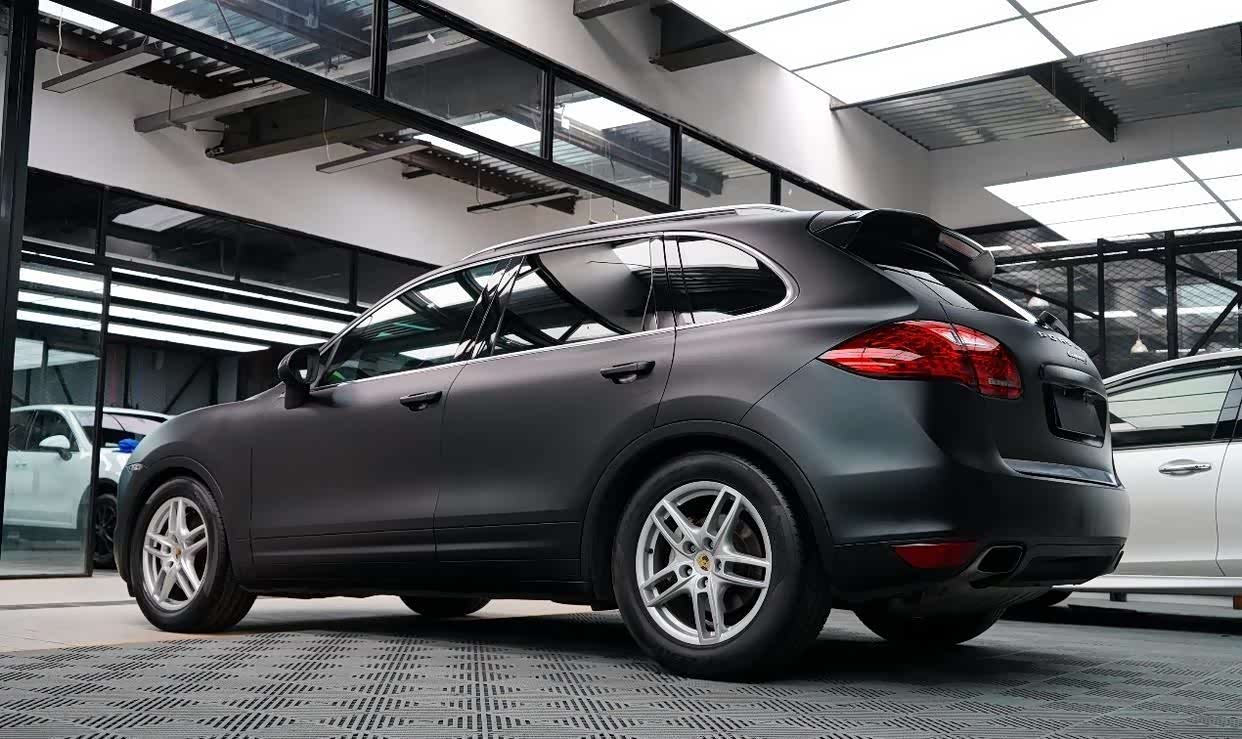 贴膜过程是一场细致化工作的体验,因为任何一个细节处理不到位,都可能放大式破坏整体效果。一般来说,整车包贴最快也需要一天的时间。与全车喷漆相比,改色贴膜对车辆完整性的保护更好,而且颜色搭配的自主性更强。改色贴膜后,不会出现相同颜色不同部位产生色差的烦恼。改色后的保时捷卡宴,整台车体仿佛变成了真正的发光体,远远看上去散发着耀眼“光芒”,让车主眼中满是惊喜。融合了许多跑车元素的保时捷,在动感完美身躯幻变改色为超亚黑后,呈现出独到的视觉魅力,将保时捷独特个性化的特色展露无遗。车面的处处细节体现出其精致的工艺设计韵味,更让保时捷车主的饱满激情表现得淋漓尽致,尽显霸道总裁范。