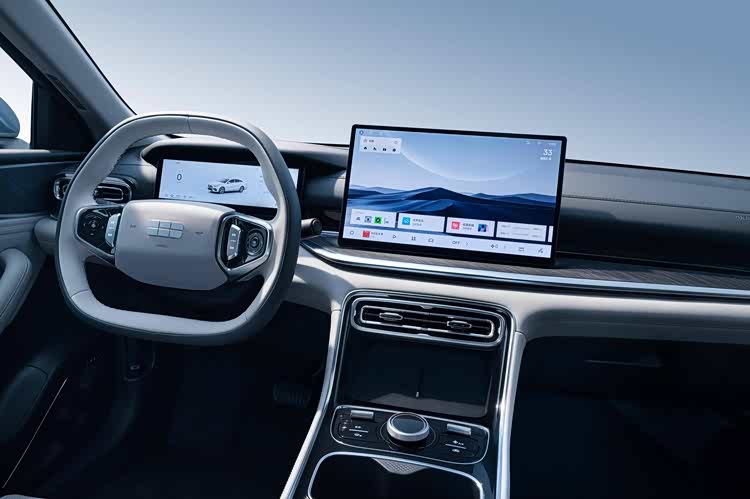 在智能方面。吉利银河星耀6搭载银河Flyme Auto智能座舱与千里浩瀚H3辅助驾驶系统,从交互到驾控全面刷新智能出行体验。其中,智能座舱配备7nm“龙鹰一号”车规级芯片,16G+128G内存组合确保系统流畅不黑屏死机;配备远超同级尺寸的14.6英寸2K中控大屏,支持湿手触控;并深度融合星睿AI大模型的随车AI语音助手,支持连续对话与模糊指令,具备深度思考与逻辑推演能力。
